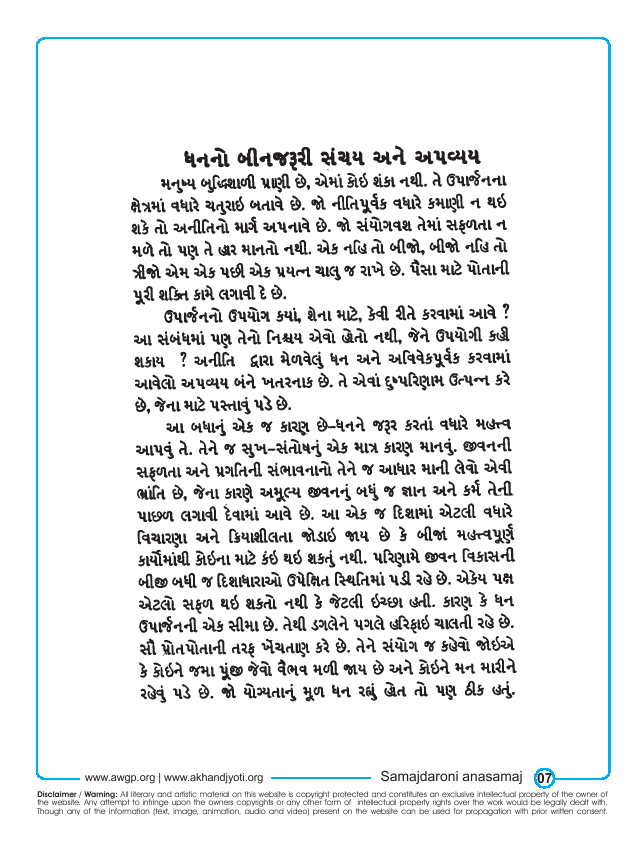 ધનનો બિનજરૂરી સંચય અપવ્યય